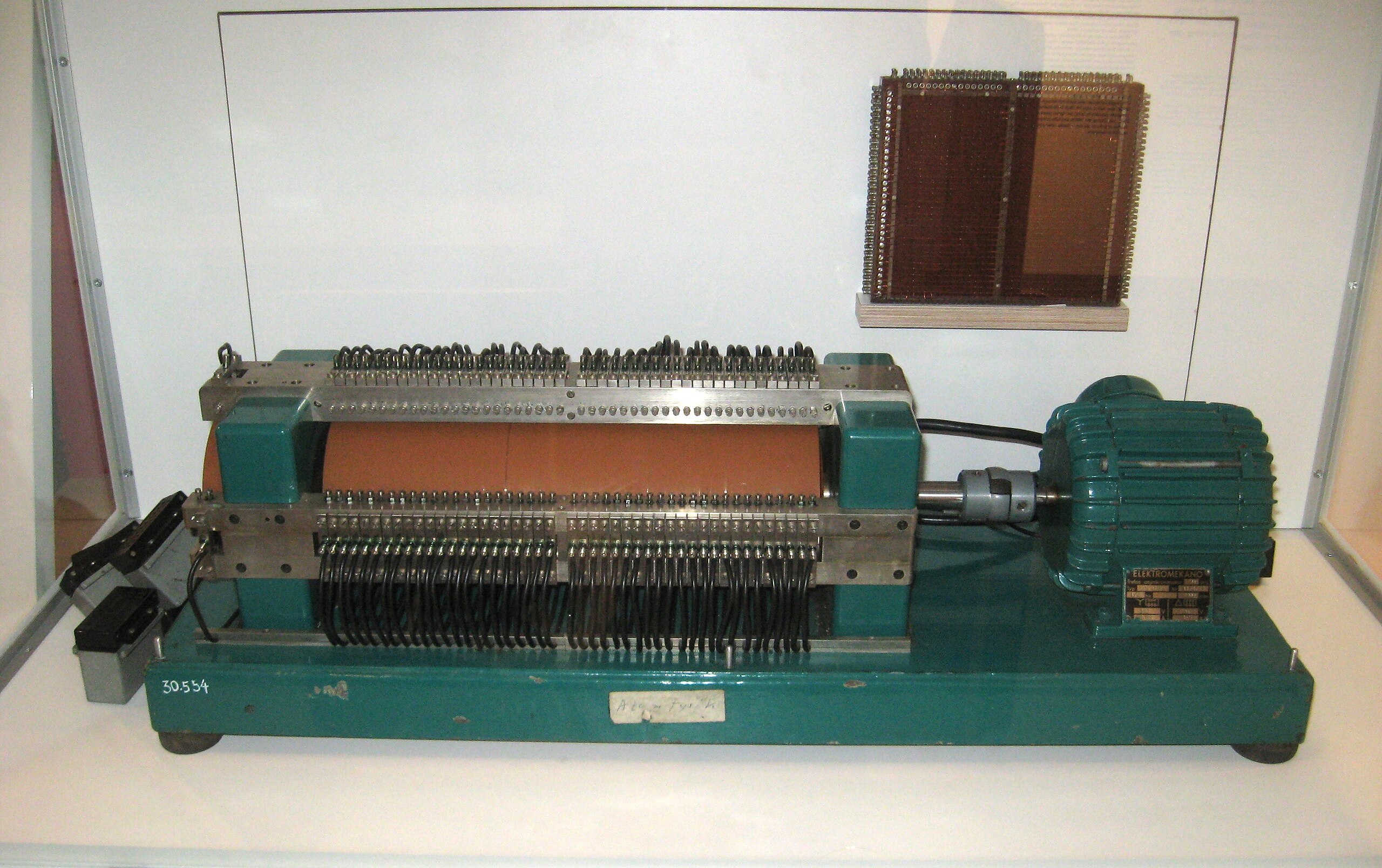 1940년대에 등장한 자기 드럼 메모리는 초기 컴퓨터의 주요 저장 장치였습니다. 이 장치는 자성을 이용해 데이터를 저장했으며, 드럼의 표면에 데이터를 기록하고 읽을 수 있는 여러 개의 읽기/쓰기 헤드가 있었습니다. 자기 드럼은 당시로서는 상당한 양의 데이터를 저장할 수 있었고, 빠른 접근 시간을 제공했습니다. 하지만 물리적으로 크고 비싼 편이었으며, 데이터를 저장하는데 한계가 있었습니다.